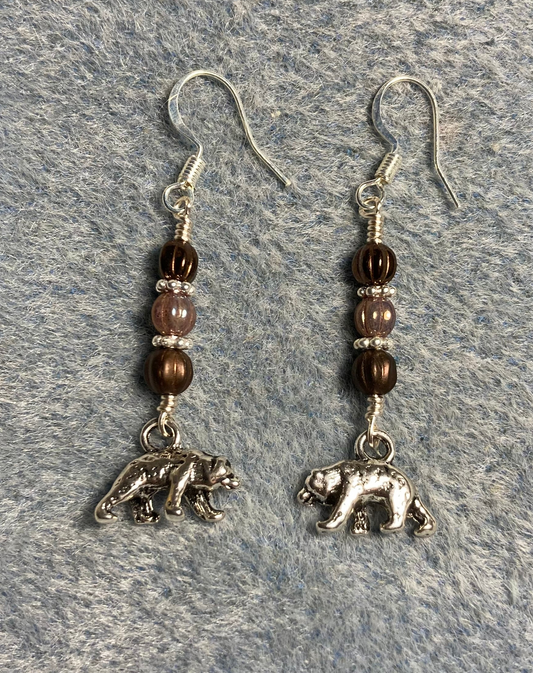 Silver frog charm earrings adorned with dark red Czech glass beads