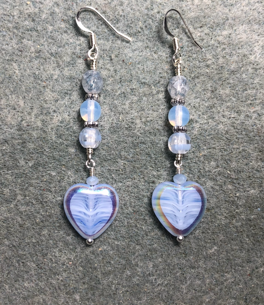Light blue Czech glass heart bead earrings adorned with light blue Czech glass beads.