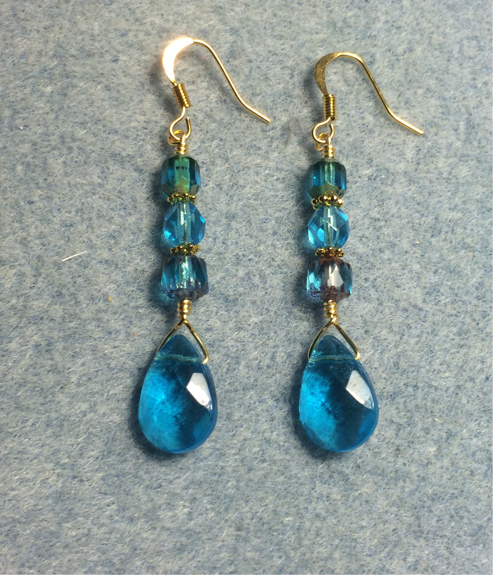 Turquoise Czech glass briolette bead earrings adorned with turquoise Czech glass beads.