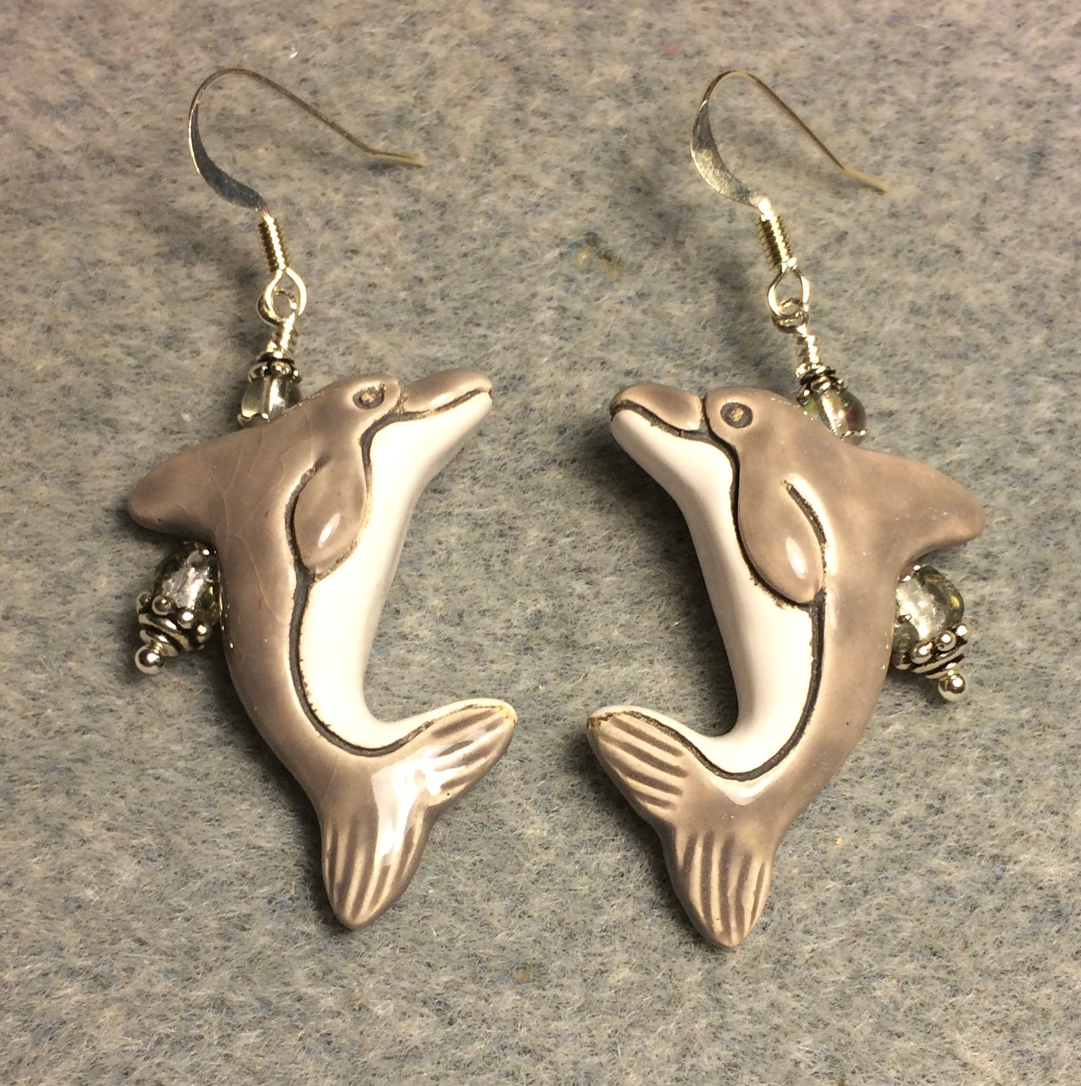 These adorable earrings are made with grey and white ceramic dolphin beads and are adorned with grey Czech glass beads.