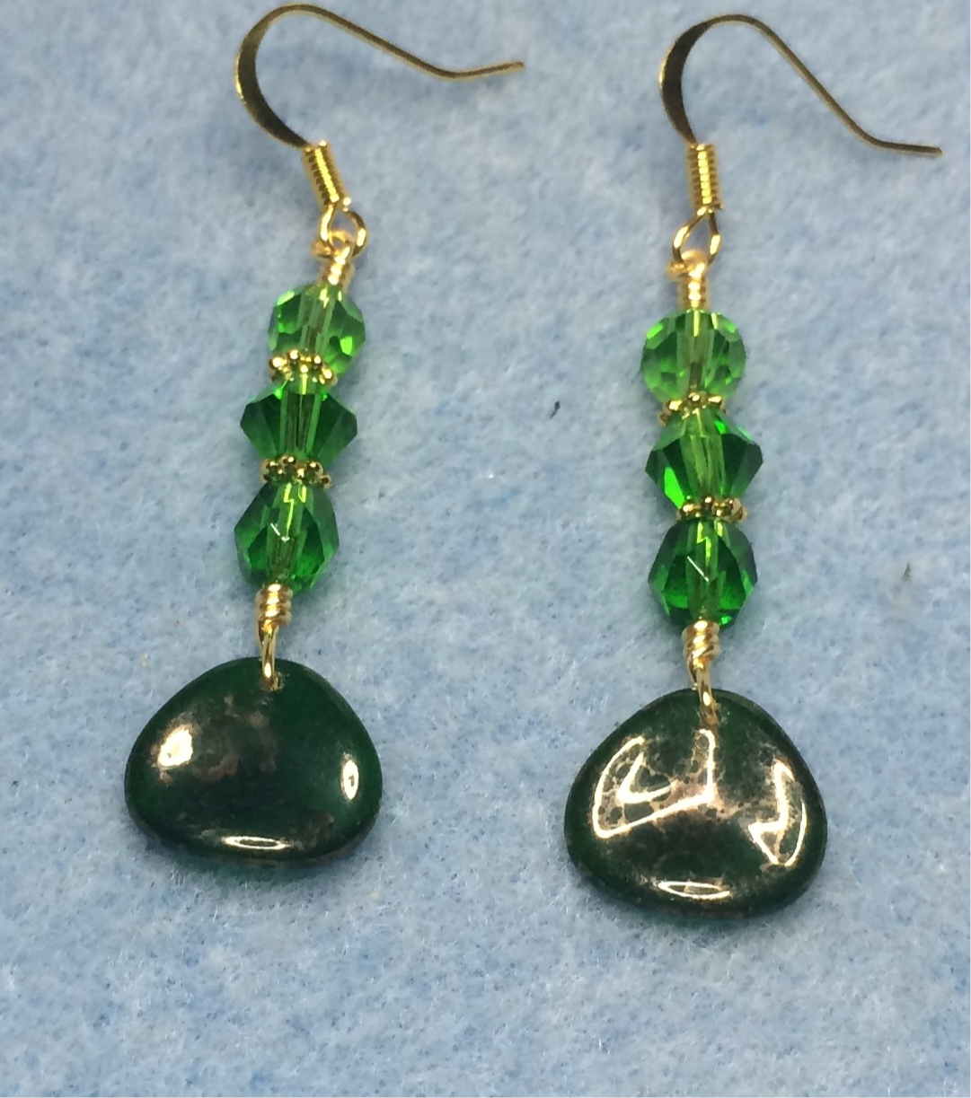 These beautiful earrings are made with emerald green Czech glass rose petal beads and are adorned with emerald green Czech glass beads.