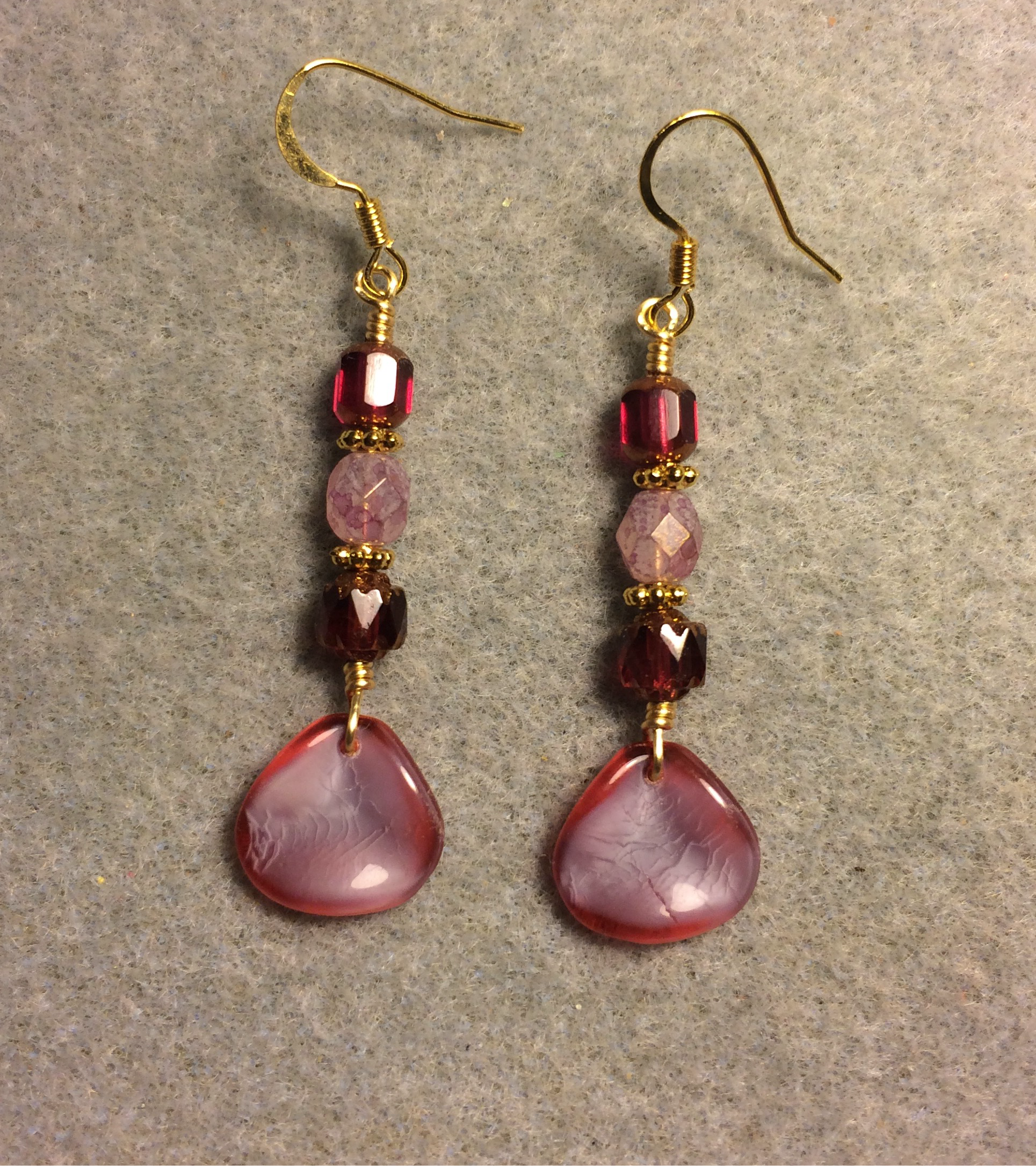 These beautiful earrings are made with shimmery pink Czech glass rose petal beads and are adorned with pink Czech glass beads.