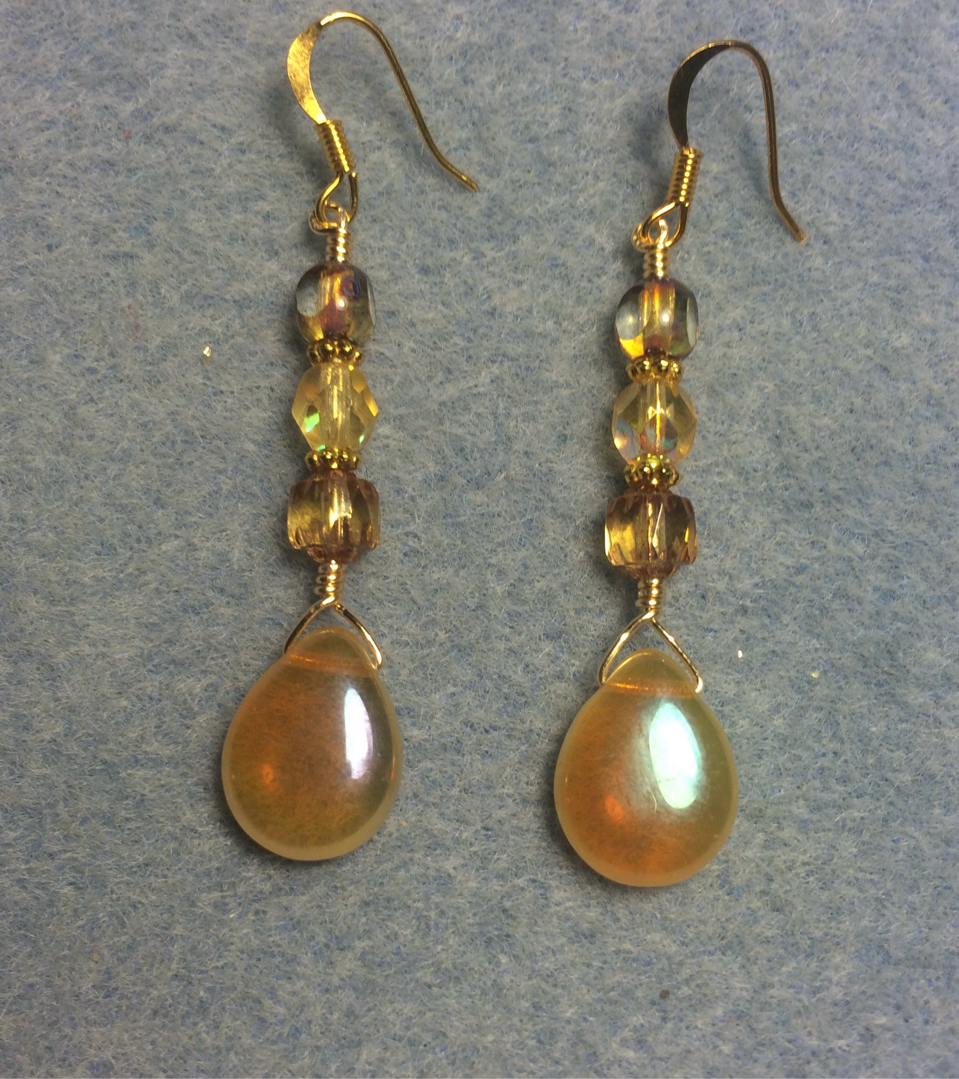 These beautiful earrings are made with amber Czech glass pear drop beads and are adorned with amber Czech glass beads.